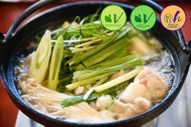 The "Tofu Hotpot", suitable for vegetarians and vegans, is a delicious meal using only vegetables in it's soup. The "Nora Mini Hotpot" is muslim friendly, with a non-alcoholic soysauce based soup.