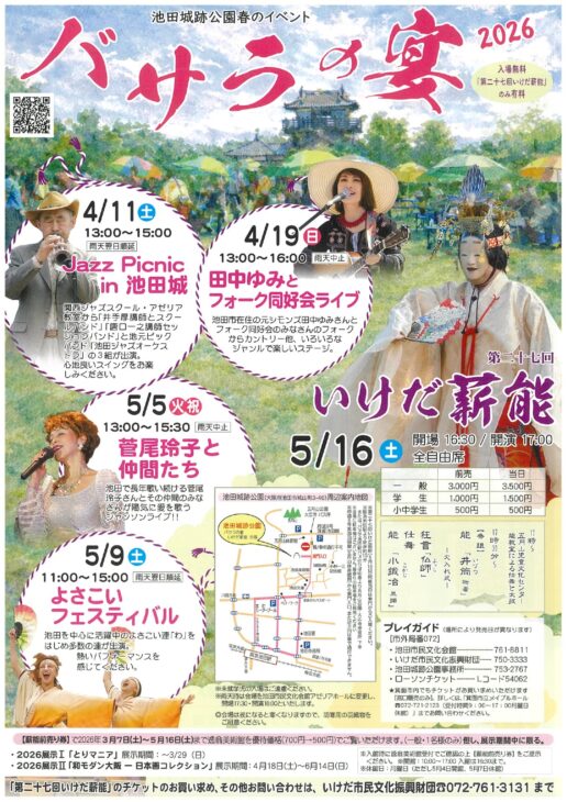 | 日時 | 5月16日(土) 開場 16:30 開演 17:00 ※雨天時は会場が池田市民文化会館アゼリアホールに変更となります。 |