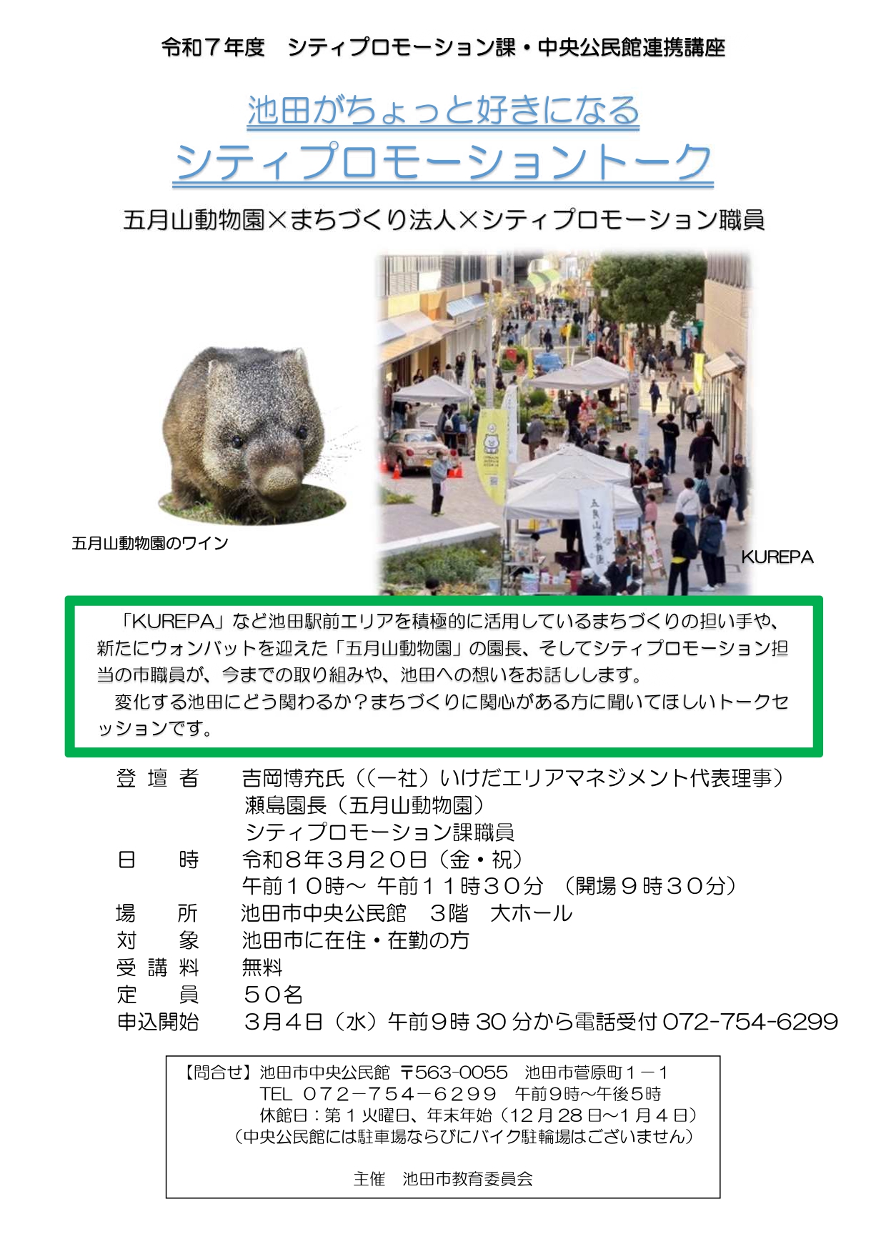 「池田がちょっと好きになる」シティプロモーショントーク 2026年3月20日10:00-11:30 https://www.city.ikeda.osaka.jp/event/1596698522429.html カレンダーへ戻る