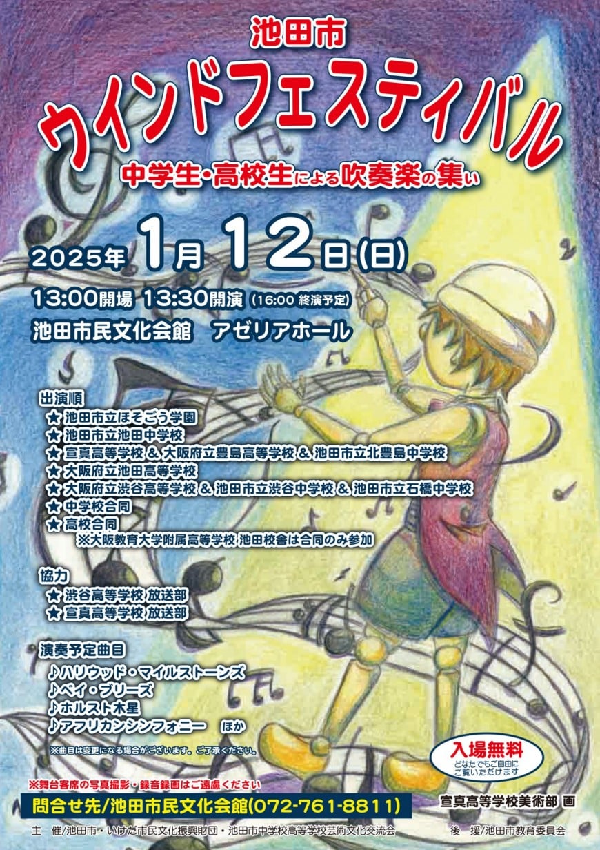 池田市ウインドフェスティバル 2025年1月12日13:00-14:00 2025年1月12日(日) 開演 13:30 開場 13:00 詳細 https://azaleanet.or.jp/250112ikeda_windfestival/ カレンダーへ戻る