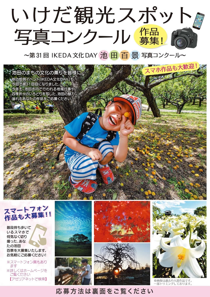 池田市内で行われる地域行事や、四季折々のいろどりを写した、 池田の魅力溢れるあなたの作品を募集しています。