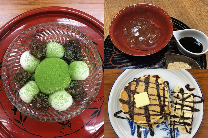 こだわりの紅茶とスウィーツ、抹茶と注文を受けてから作る本わらび餅、白玉を使ったぜんざいがお奨めです。