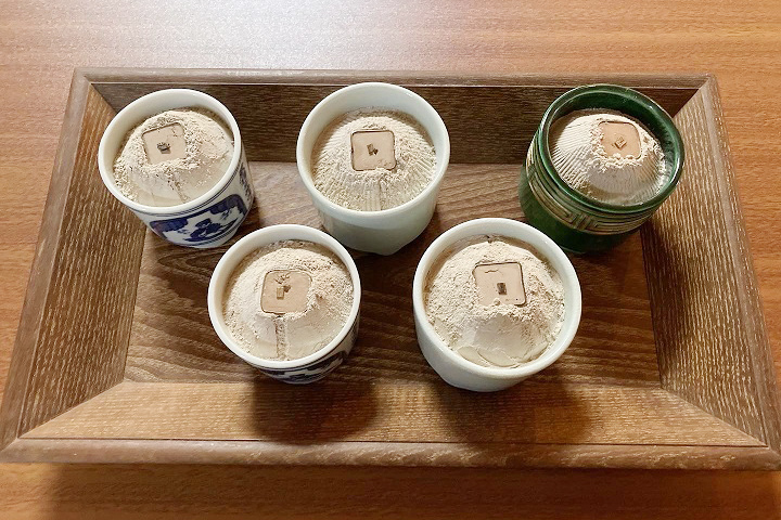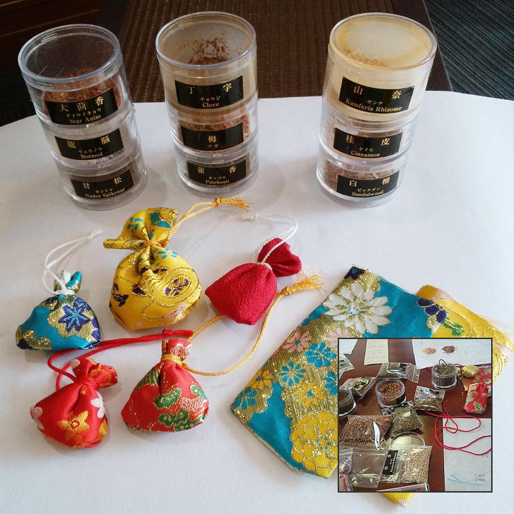 9種類の香の材料を使って、お好みの香りを調合して袋に入れます。