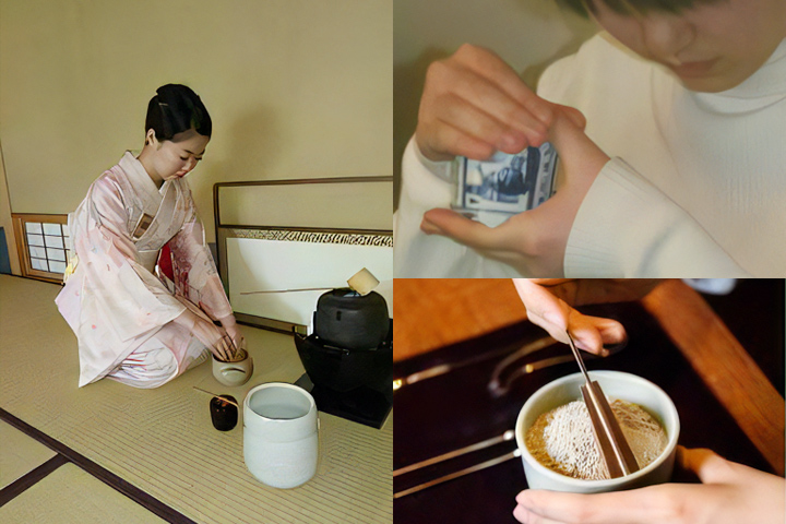 お菓子、抹茶のいただき方を学んだあと、お茶を点てる作法を学びます。