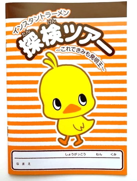 小学生がカップヌードルミュージアム 大阪池田に行くと、希望者は受付で「探検ツアーハンドブック」をもらうことができます。かわいいひよこちゃんと探検しながら書き込んでいけるこのハンドブック!とてもよくできていて、楽しいです!!ぜひもらって活用して下さいね♪ ※小学生限定