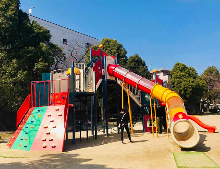 でもね、水月公園なら幼児向けの小さな滑り台や砂場があって、スペースも広いので小学生のお兄ちゃん、お姉ちゃんが走り回っても全然大丈夫!