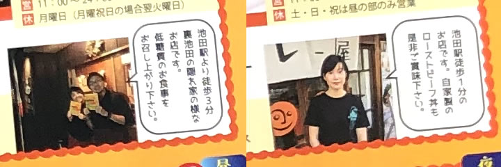 ご家族で、友達と、デートで、池田のお店の自慢の一品を楽しんでください。