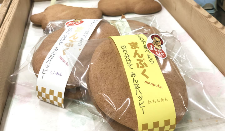 山脇さんが手に持っているのは「まんぷく」というラベルが付いた丸いお菓子。あ、これまんぷくパスに載ってました!
